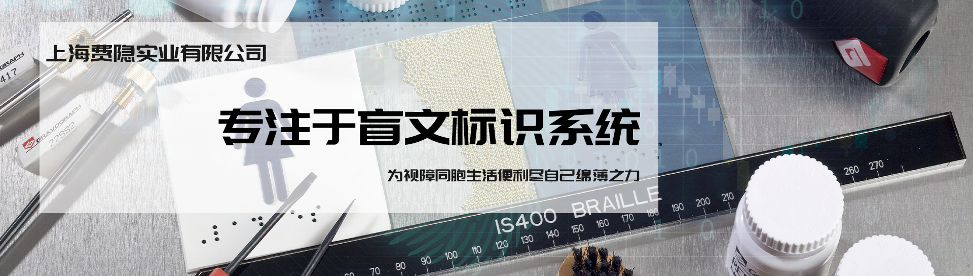 上海費隱實業(yè)有限公司是一家專注于盲文標識系統(tǒng)研究及相關(guān)產(chǎn)品開發(fā)的科技型企業(yè),推動盲文標識系統(tǒng)的普遍應(yīng)用是我們的神圣職責。公司成立數(shù)年來,我們得到了各地盲校、殘聯(lián)、標識協(xié)會和多家愛心企業(yè)的鼎力支持,目前產(chǎn)品已經(jīng)遍布首都機場、上海虹橋、天津高鐵、杭州地鐵等大型公交樞紐,以及眾多醫(yī)院、學校、賓館、公園、行政服務(wù)中心等公共場所,也成為了很多愛心企業(yè)指定的盲文標識供應(yīng)商。我們愿與所有樂于助盲的伙伴一起,...